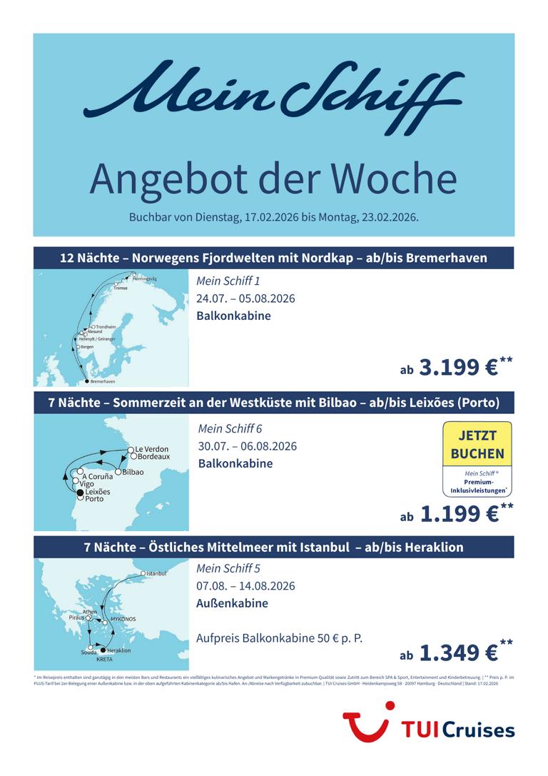 Mein Schiff® Angebot der Woche – 17.02. bis 23.02.2026