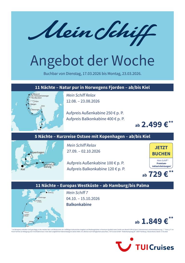 Mein Schiff® Angebot der Woche – 17.03. bis 23.03.2026