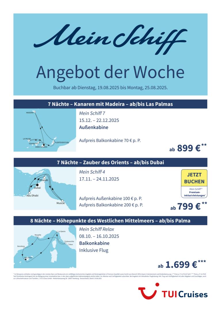 Mein Schiff® Angebot der Woche – 19.08. bis 25.08.2025